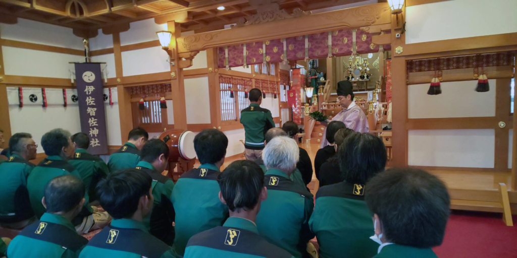 工事ができていることに感謝し、全員参加で伊佐智佐神社にてお祓いを行いました。 山神祭(やま ...