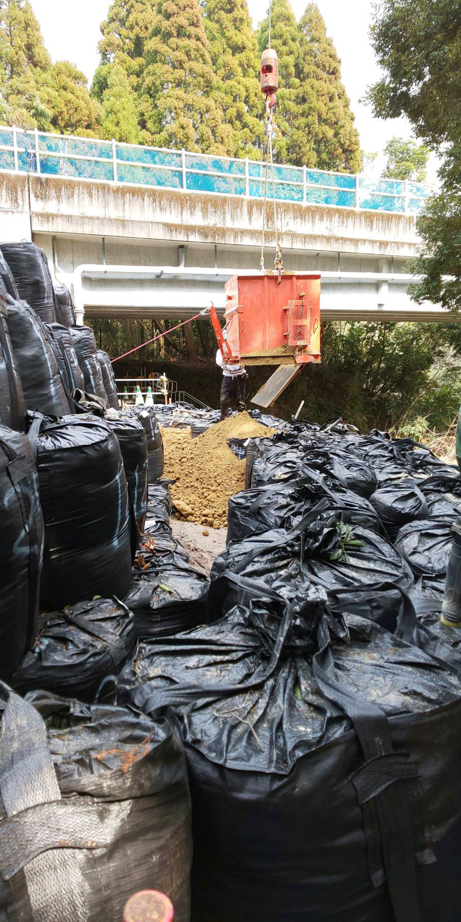 前回に引き続き、盛り土を行いながら大型土のうを作成・設置して
