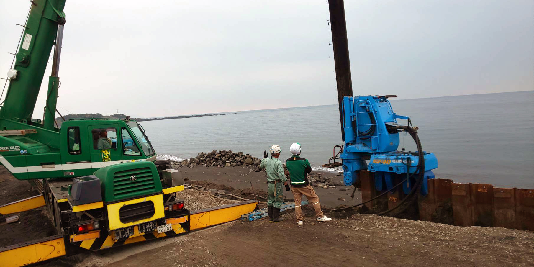 現在は役目を終えた鋼矢板を引抜いているところです。
