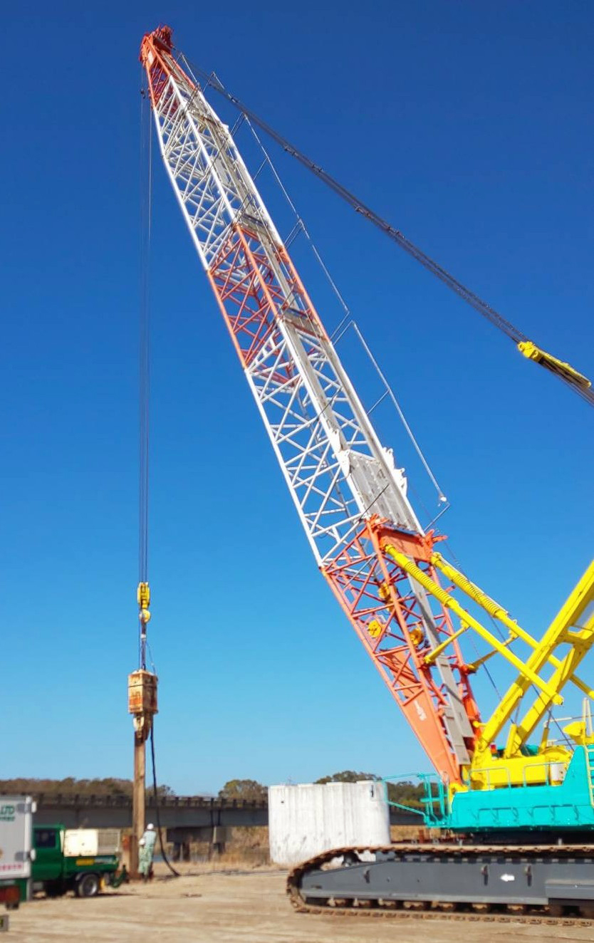 工事中に地中に埋めておいた鋼矢板を引抜いています。
